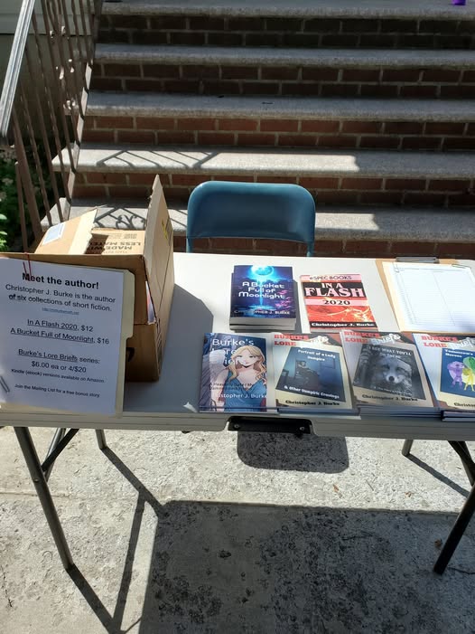 I've spoken to a few people who've stopped to chat. And after a while, I've managed to sell a few books. Nothing that I'll retire over, but I'm meeting the neighbors