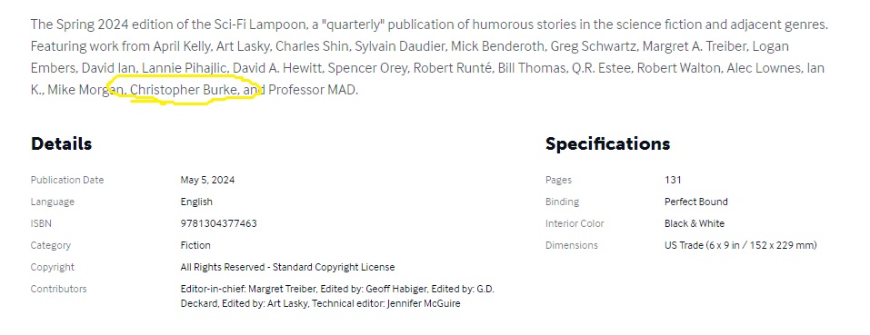Science Fiction Lampoon. So that's this credits in this one calendar year (not counting self-publishing and a recent reprint). That's a record for me!