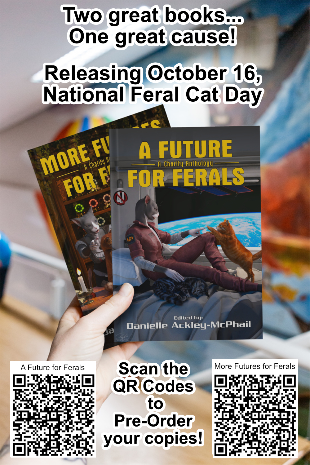 You can find them on Amazon at https://www.amazon.com/Future-Ferals-Charity-Anthology-Book-ebook/dp/B0FSYM6S13, and https://www.amazon.com/gp/product/B0FT1PTV5G.